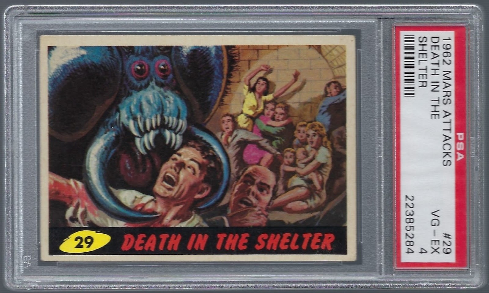 Though it was never my intention I have decided to slowly chase the 1962 Mars Attacks set in PSA 4 slabs. The sheer beauty and unique nature of this set are just too tough to ignore. Great artwork has gripped my wallet and I.